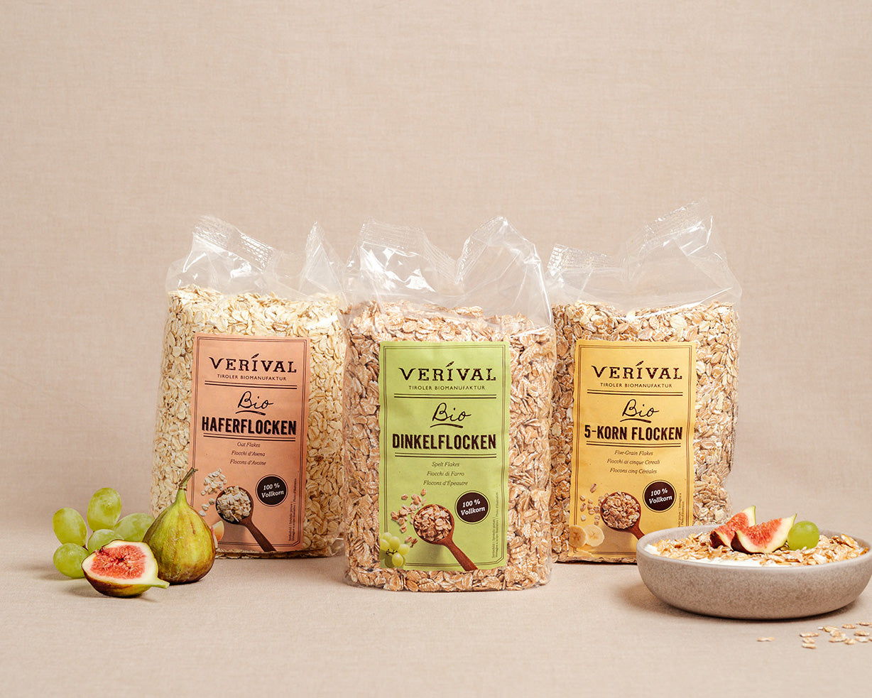 Les flocons de céréales conviennent aux enfants, aux adolescents, aux adultes, aux sportifs et aux personnes âgées. Grâce à leurs précieux nutriments, ils contribuent à une alimentation saine et nourrissante à tous les stades de la vie.Dans notre gamme, tu trouveras de nombreux mélanges de porridge préparés avec les meilleurs ingrédients bio et de manière artisanale avec amour. Nous veillons toujours à la qualité des matières premières et misons sur la région et la durabilité. Ainsi, la base des produits de porridge VERIVAL, le son d'avoine, est cultivée et transformée au Tyrol. Pour que tu puisses toi aussi profiter des flocons pour le petit-déjeuner et acheter les flocons bio chez nous, il te suffit de cliquer sur la boutique en ligne et de te faire livrer les flocons chez toi.