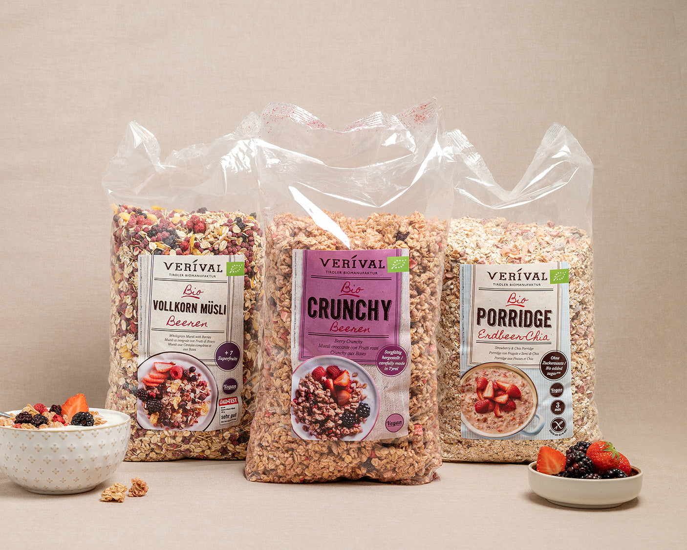 Un autre avantage de nos grands emballages est qu'ils sont respectueux de l'environnement. Il y a plus de muesli et de porridge, tu dois donc en commander moins souvent. Les grands paquets de muesli et de porridge de VERIVAL sont fabriqués à la main avec amour au Tyrol. Il est important pour nous de n'utiliser que les meilleures matières premières biologiques. Il en résulte de délicieuses recettes de muesli et de porridge que tu peux facilement commander en ligne dans de grands emballages.