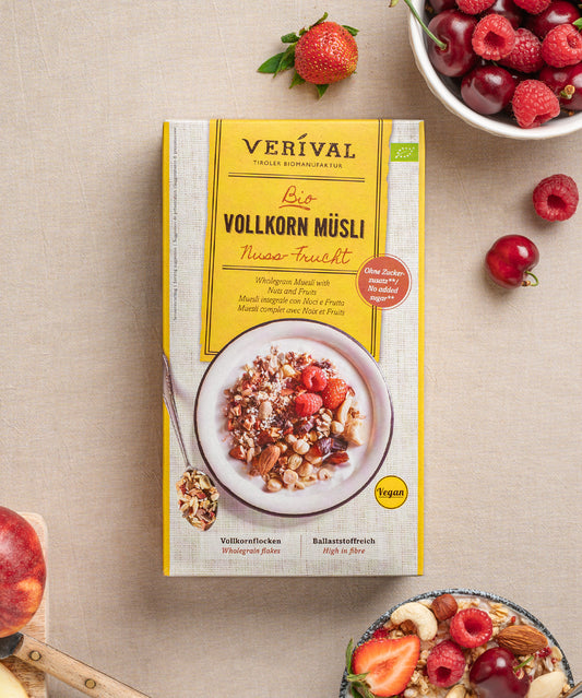 Discover our muesli rangeInspired by our Alpine routes, our deliciously natural muesli and bircher are made with regional wholemeal grains and prepared by hand in the heart of Tyrol. Naturally sweet with low to no sugar—perfect all year round.