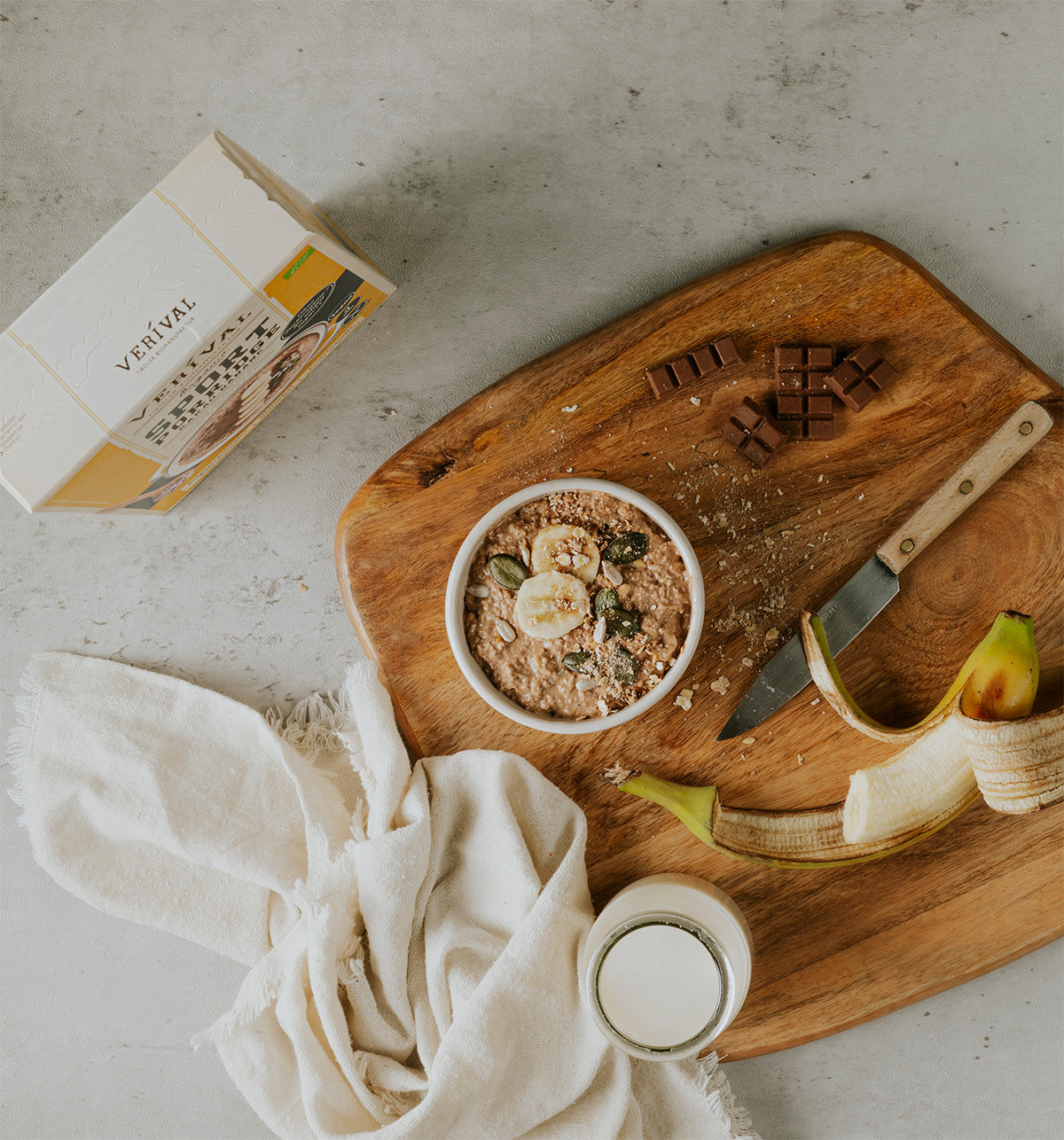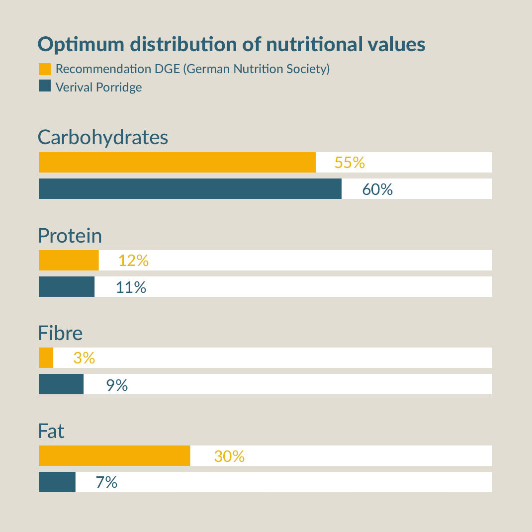 Cereals, nuts and seeds form the basis for our porridges, granolas and mueslis. These are important plant-based sources of protein, which play a particularly important role in a vegan diet. The oats in our Verival porridge provide you with optimal protein, which helps you build muscle and also keeps you full for a long time. With just one portion of porridge in the morning, you are already covering 20-25% of your daily protein requirement.