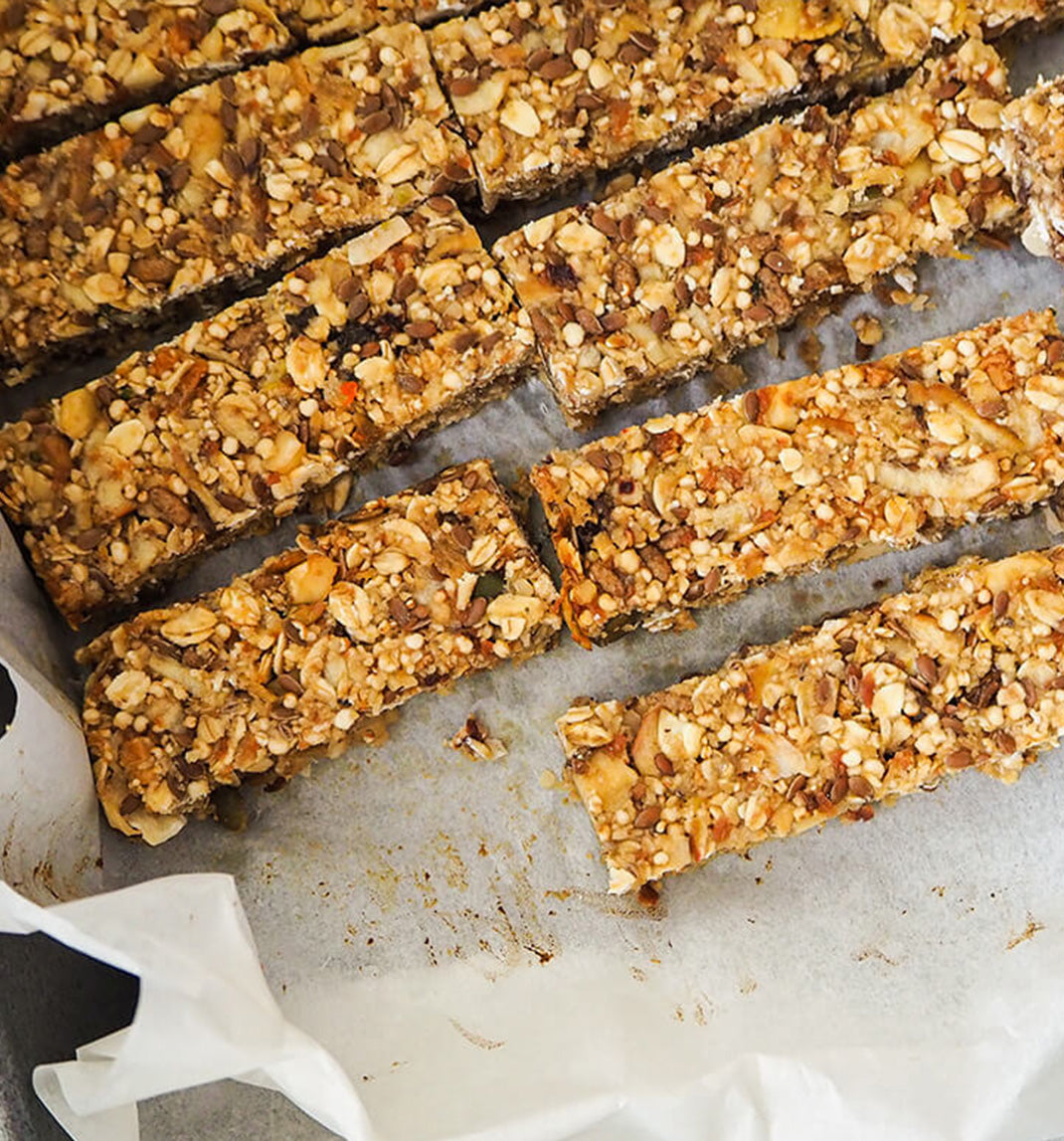 Les barres de céréales faites maison sont une excellente façon d'obtenir un snack sain et délicieux. Avec les barres faites à la main, tu peux contrôler la quantité de sucre qui se retrouve dans le produit - ou tu peux faire des barres qui sont complètement sans sucre. Divers flocons, comme les flocons d'avoine, sont parfaits comme base. Tu peux par exemple utiliser des dattes pour sucrer tes barres saines. Les noix te rassasient également et t'apportent des nutriments importants.