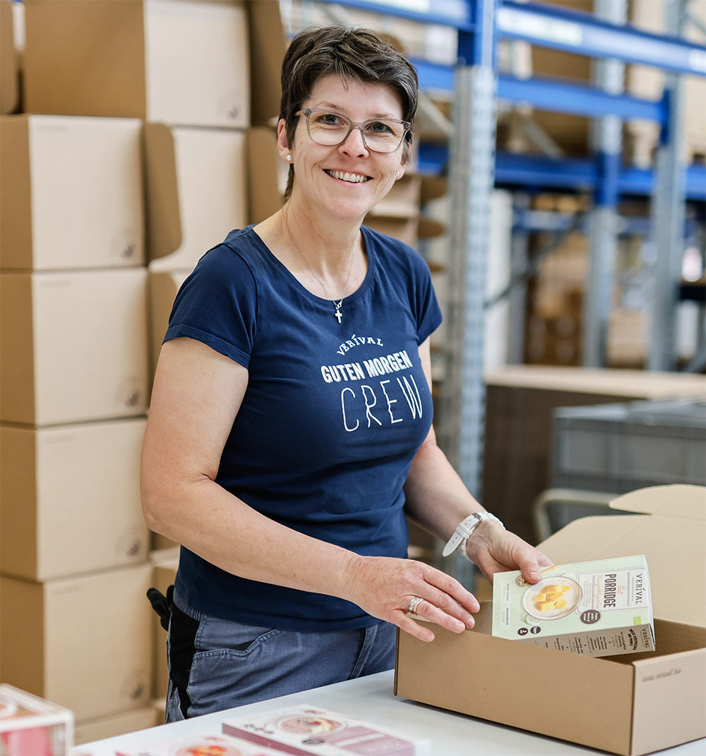 Notre équipe de stockage emballe tes commandes à la main avec amour et s'assure que tes produits Verival arrivent le plus rapidement possible à ta table de petit-déjeuner.
